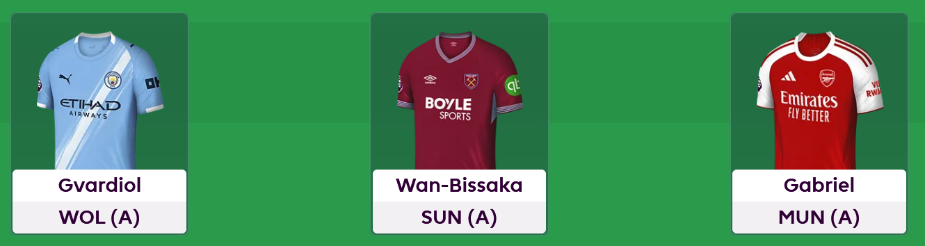 So, in defence, it's a double-up! The back four is Gvardiol, Wan-Bissaka, and Gabriel. Gabriel is the biggest goal threat in the league off set pieces in my opinion, and there's potential for CBs to benefit massively from the changes this season, with defensive recoveries and BPS improvements. I was half expecting a price rise to 6.5m, so I'm pleasantly surprised by 6m.