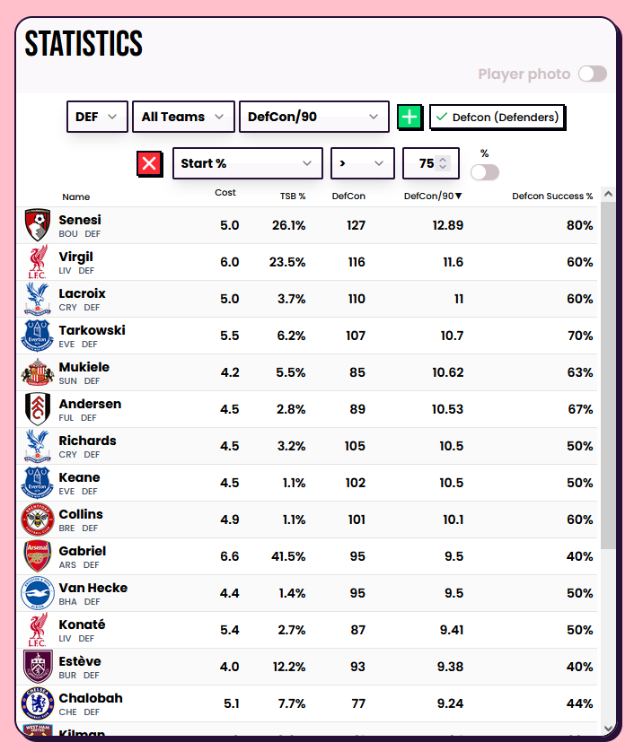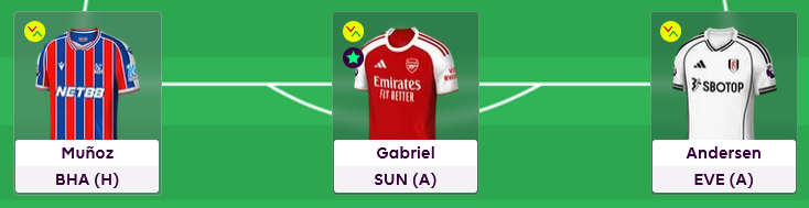 Andersen is away vs Everton, I think a lot of teams have got a difficult decision between him and Senesi but it's Andersen away vs Everton or Rodon away vs Forest for me. The clean sheet odds are very close, Andersen 1% ahead but better for defcons so he's in.