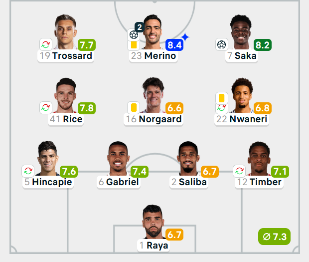 Arsenal went near full strength in the Champions League, in terms of available players anyway, yet another clean sheet. They've got Bayern next so I can see why Arteta did, to take the pressure off that fixture by getting a result now. Hincapie, Gabriel, Saliba and Timber was the back 4. Timber came off at 73 minutes for White so he should be fine, Calafiori got a full rest on the bench. Saka scored from the penalty spot. Merino filling in up top for Gyokeres bagged a brace, don't buy him though, Gyokeres could be back GW12. If you play draft he's a fun one week pick there.