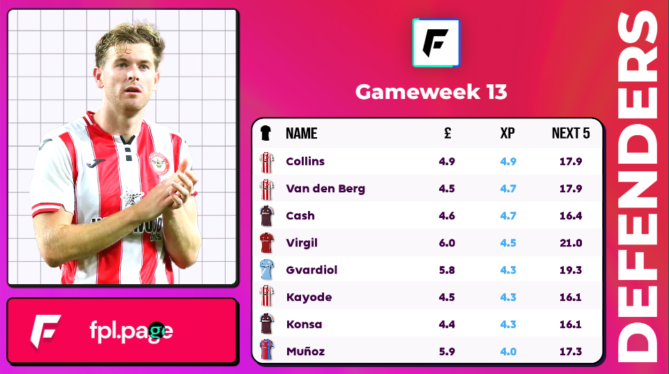 Collins is top of all defenders this week, he's got an eye for goal, 2 goals, 7 assists last season in fact. 9.5 defcons per 90 as well places him in the Top 10 defenders.