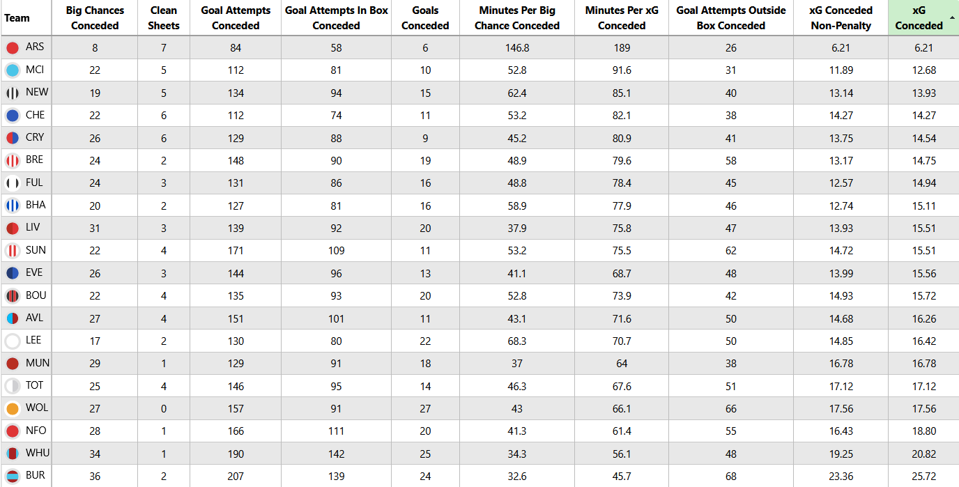 Brentford have actually been 6th best for xGC, though just the 2 clean sheets, 19 goals conceded. Villa are 13th, but with twice as many clean sheets.