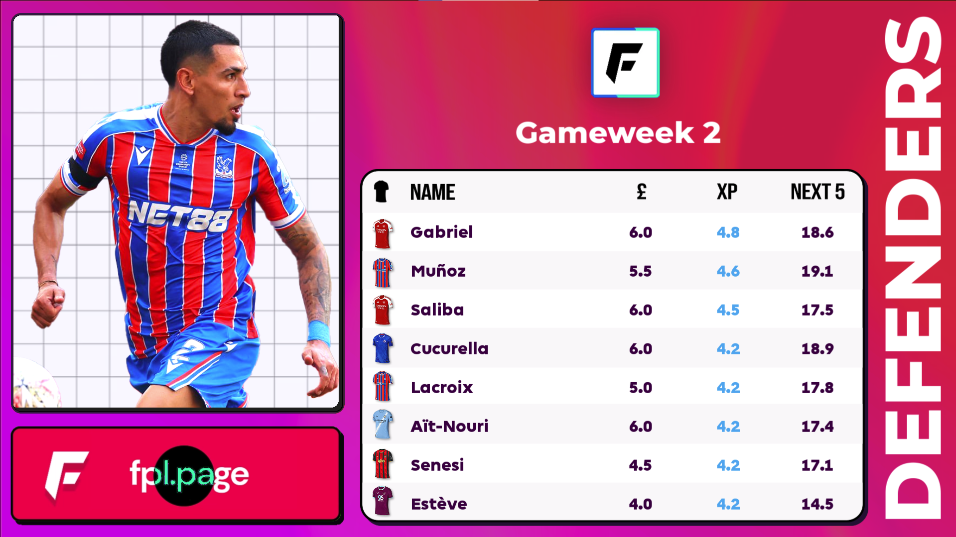 Gabriel and Cucurella are my two favorite premium defenders currently. Ait-Nouri had a good debut, it's just the longer term question mark over his nailedness as Gvardiol returns to the team. Gvardiol and Ait-Nouri were third and fourth for xGI last season in fact. We'll see them starting together plenty of course.