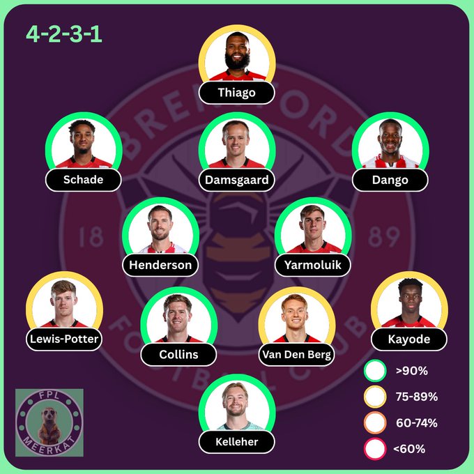 Straightforward from Brentford, contention in the fullback spots but should be an unchanged side given the great performance vs Villa.