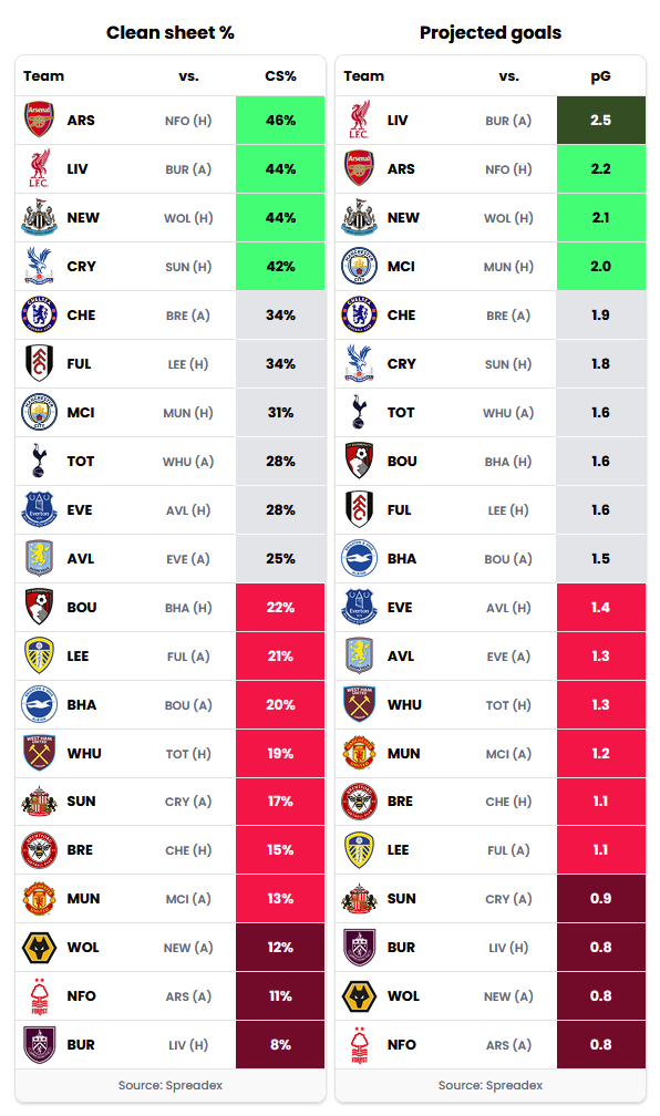 My defence feels a bit weak this week given no Liverpool, Arsenal, Newcastle coverage who top the clean sheet odds, Palace on 42%. Fulham are home to Leeds though which is a really good fixture for Andersen on paper.