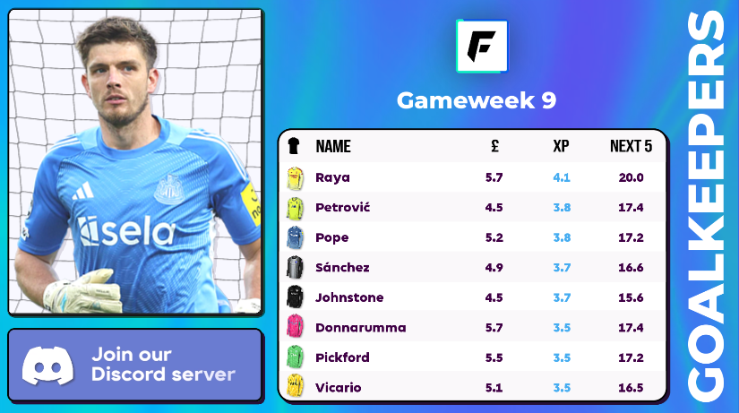 Arsenal have got a home game to Palace next, which has Raya topping the table with 4.1 points. They haven't even faced a shot on goal their last two games; that's how ridiculous their defence has been, and it's why many are doubled up, whether that's Raya and Gabriel, Timber and Gabriel, Gabriel, Saliba, etc. 4.83 expected goals conceded (xGC) is best in the league. 3 goals conceded in 8 is crazy, honestly.