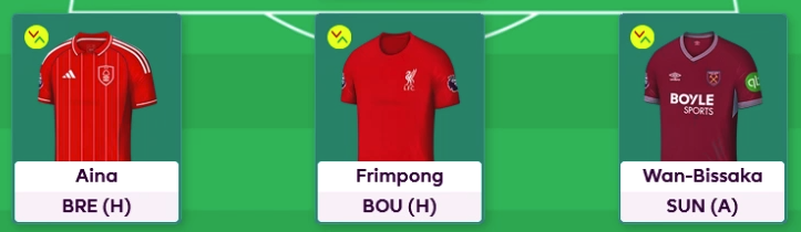 The template defence is Aina, Frimpong and Wan-Bissaka.