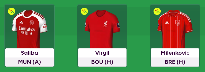 In defence, it's now Saliba, Van Dijk, and Milenkovic.