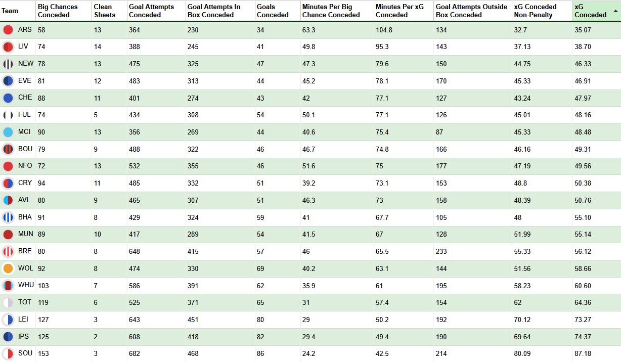 The double Arsenal is retained with Saliba joining instead, Gabriel, Aina, Saliba back 3. A 1-0 win over AC Milan in their most recent pre-season friendly and the likes of Zubimendi added to the squad which in theory should only shore them up further, and they were already the best defence for xGC as that table showed, Liverpool kept 1 more clean sheet however. I'm conscious of being flexible when it comes to defensive contribution points and who the best picks are now, the likes of Tarkowski, Milenkovic, Bednarek got the most because teams get at them more than the likes of Gabriel, Van Dijk, Gvardiol who also cost more. The top teams control the games more simply put, and therefore are spending less time defending. Going back to that table earlier, Gabriel would have gotten 4 DC points, Saliba an extra 12. Tarkowski was top with 44 extra.