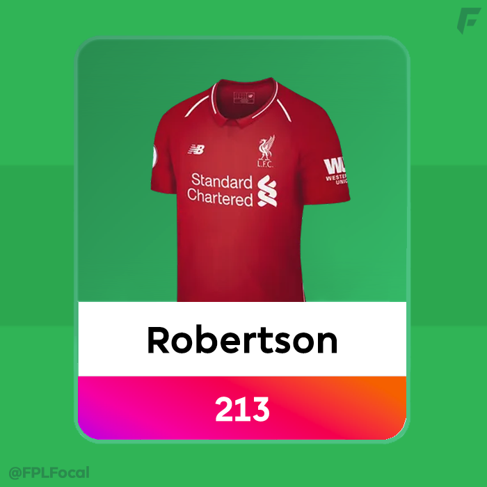 The next two are Virgil van Dijk and Andy Robertson who remarkably both joined the dream team from their 2018/19 season, the year before Trent joined them. They scored 208 and 213 points respectively.