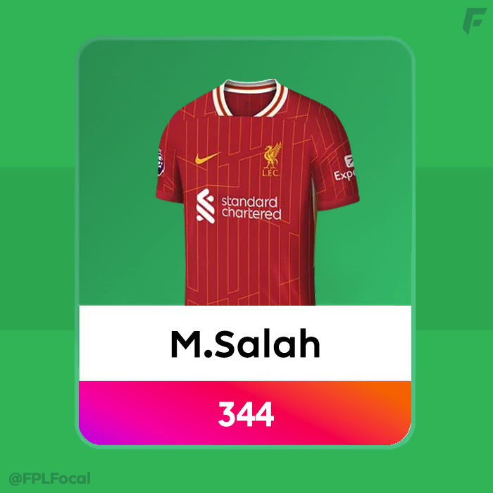 One name we all expected to see is Salah 👑, who set the all-time record for FPL points is his magnificent 17/18 campaign, where he finished on 303 points from 32 goals, 12 assists, 15 clean sheets, 26 bonus. It was his first season with Liverpool and a truly extraordinary performance. He's the only player to ever break 300 points. 7 years later, under Slot in the first post-Klopp season he exceeded all expectations by obliterating the points record he'd set himself once upon a time, 29 goals, 18 assists, 55 bonus points, 344 points! Will we ever see that record beaten?