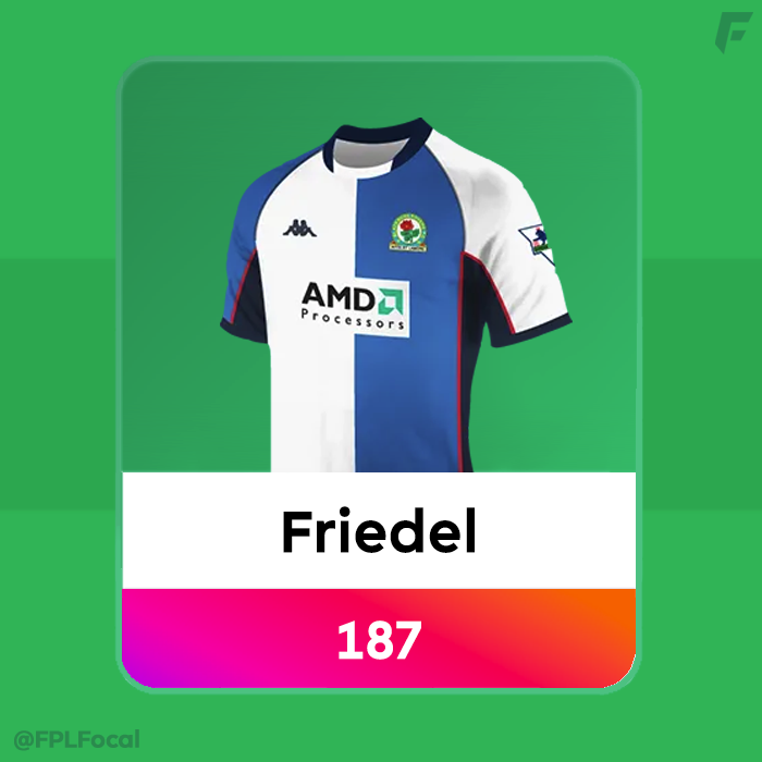 Let's jump straight in, and in goal it's Brad Friedel 🧤 from the 02/03 season, where he got 187 points with Blackburn Rovers. He made 37 appearances, and kept 15 clean sheets. That season Blackburn got 16 wins, 12 draws, and just 9 losses. He actually scored vs Charlton the following season but 02/03 was the record-setter.
