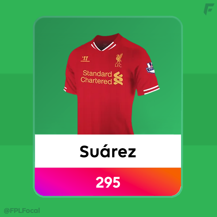 The first of our three strikers is Luis Suarez from his 13/14 season where he scored 295 points. This was an iconic season in FPL history - Suarez missed the first 5 games through suspension. So he made 33 appearances, where he scored 31 goals, and got 12 assists. Even more remarkably, that season Gerrard took Liverpool's penalties, and that season scored all 10 in the league. Who knows what could have been if he'd had penalty duties or the extra 5 games under his belt. Although Haaland's 36 goal season fares marginally better, Suarez's 0.94 goals per game without penalties is unmatched. We can only speculate what could have been had he been on duties. Some would argue this was the greatest individual season in Premier League history and the most complete performance by a striker.