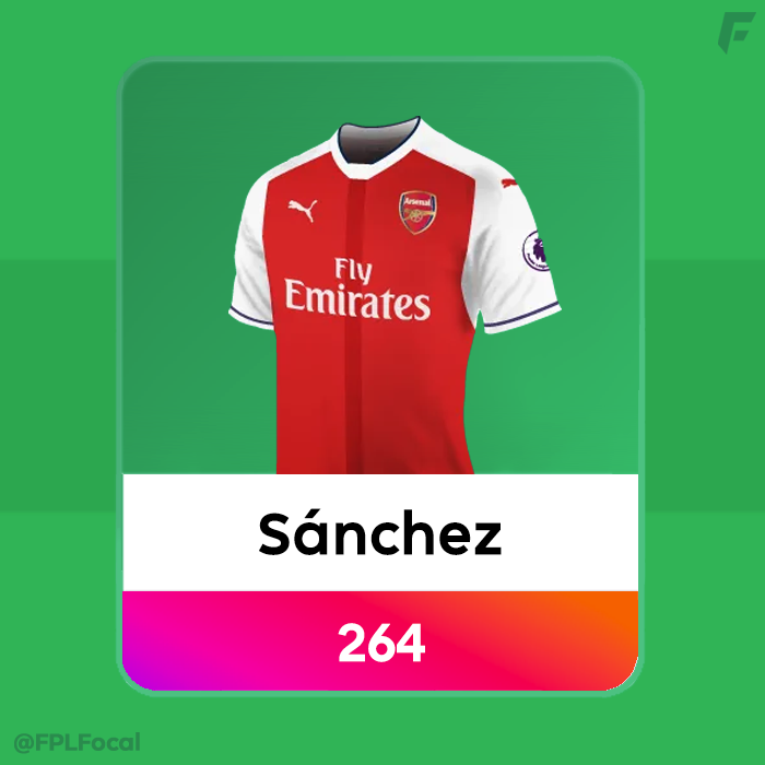 Alexis Sanchez completes the midfield from his 16/17 season with Arsenal, where he got 264 points. He scored 24 goals, and 10 assists and only 2 of his goals were penalties too. Sanchez never hit the same heights again after that season, scoring just 7 goals the following season before moving to Man United. He was a truly elite pick at the peak of his powers during his Arsenal tenure. Salah scored 265 points in the 21/22 season, and 303 in 2017/18 meaning he's scored high enough to join the team three times! Sanchez will be the first to leave the team if another midfielder joins.